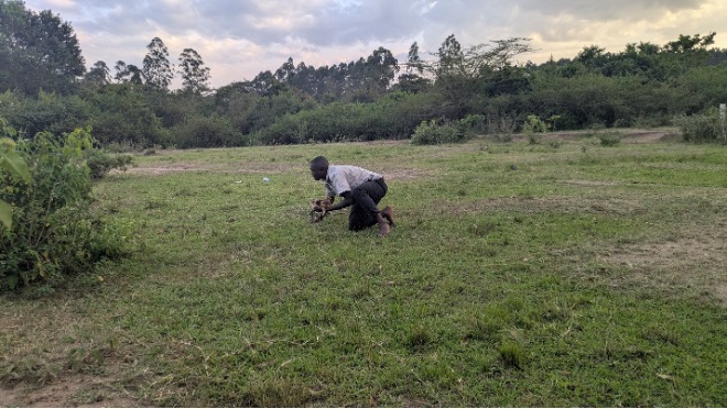 Jamal was no stranger to conservation; he had been volunteering to monitor the breeding progress of cranes in the area, specifically spotting GCC families and informing the project team, including Nature Project Officer Mr. Leonidas Momburi and our community conservation champions. Wanting to help, Jamal assumed the chick had been abandoned and carefully picked it up. However, he was about to learn a fascinating lesson in wildlife behaviour.